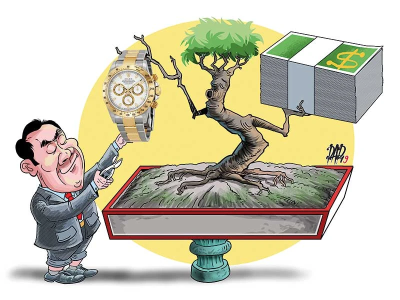Tháng 11-2018, một quan chức cấp cao ra tòa. Một bị cáo cùng ra tòa với ông khai đã tặng ông chiếc đồng hồ Rolex trị giá 7.000 USD. Quan chức thì khai mua chiếc đồng hồ ấy do bị cáo kia bán lại với giá 1,1 tỷ đồng. Đây là tiền ông kiếm được nhờ bán cây cảnh. Ông có nghề trồng và săn sóc cây cảnh rất mát tay; có những chậu cây cảnh của ông giá lên đến cả 10 tỷ đồng. Vậy bán cây cảnh, mua đồng hồ Rolex đeo cho nó lóng lánh là chuyện bình thường.