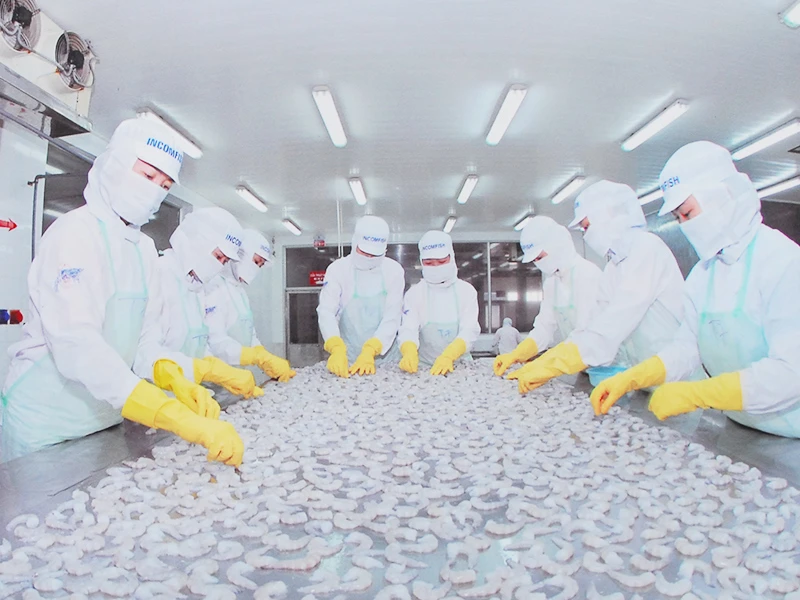 Chế biến thủy sản đông lạnh xuất khẩu tại khu công nghiệp Vĩnh Lộc, quận Bình Tân, TP.HCM. Ảnh: QUỐC THANH