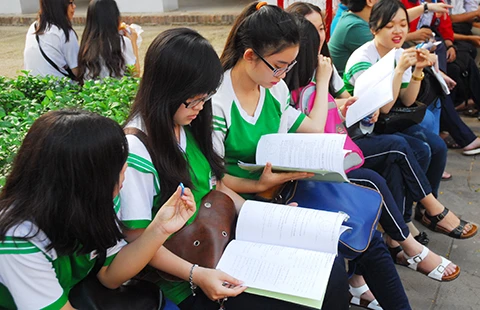 Thí sinh trước kỳ thi THPT Quốc gia năm 2015 tại TP.HCM. Ảnh: HTD