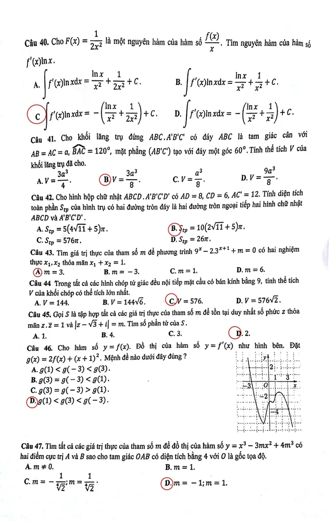 Đề thi, bài giải gợi ý các mã đề môn Toán ảnh 12