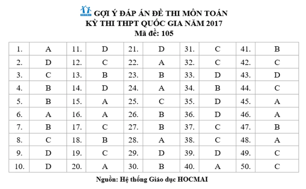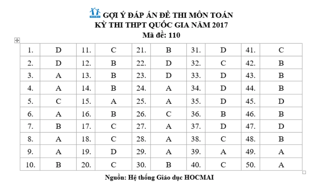 Đề thi, bài giải gợi ý các mã đề môn Toán ảnh 9