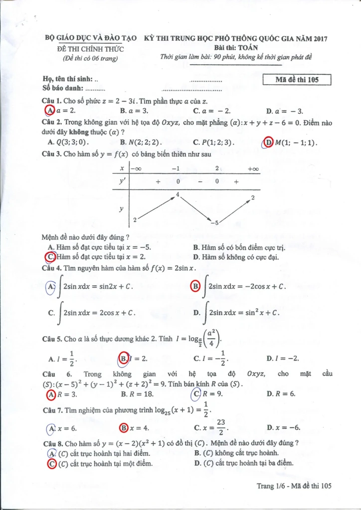 Mã đề 105