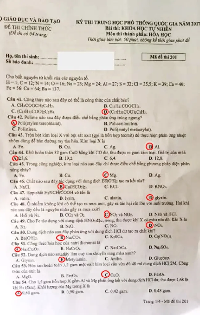 Đề thi, gợi ý bài giải các mã đề môn Hóa học ảnh 11