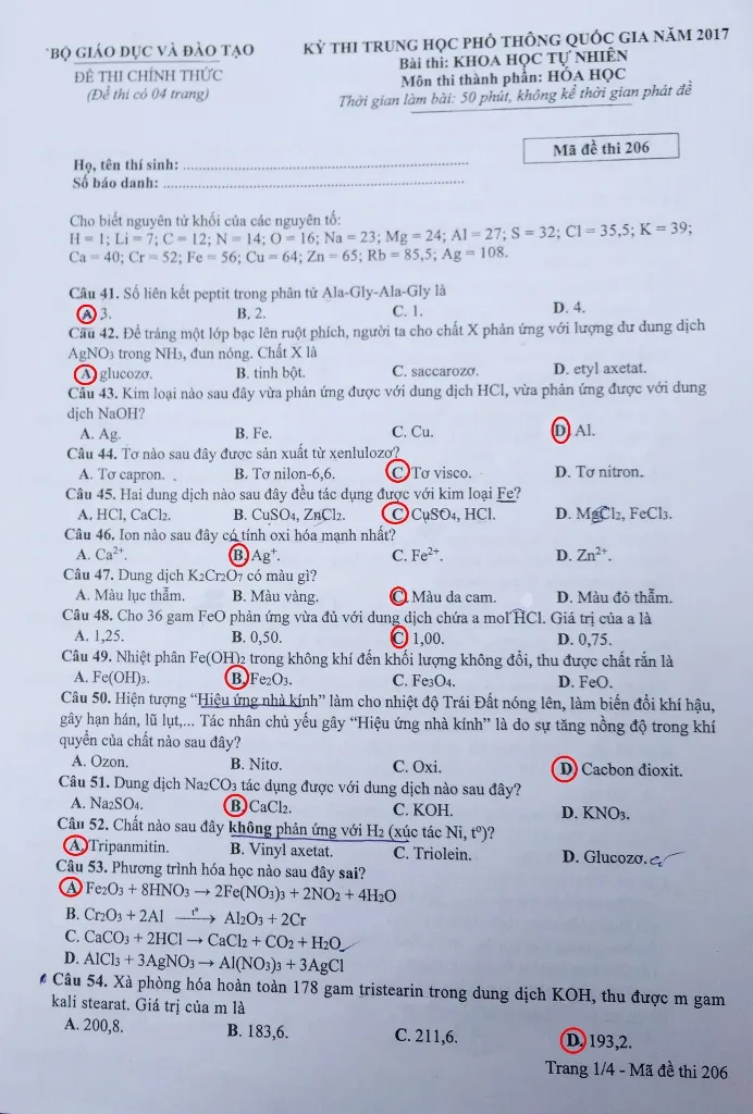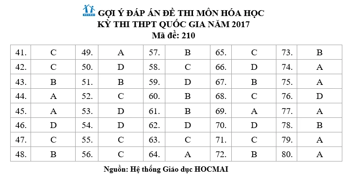 Đề thi, gợi ý bài giải các mã đề môn Hóa học ảnh 12