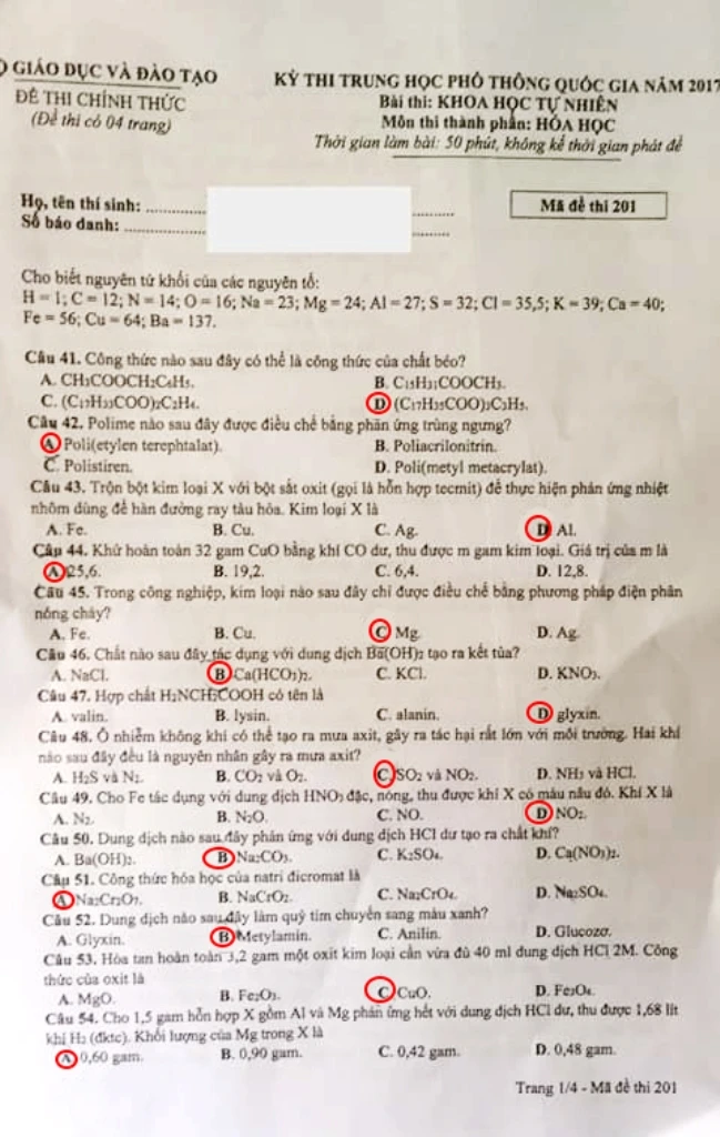 Đề thi, gợi ý bài giải các mã đề môn Hóa học ảnh 7