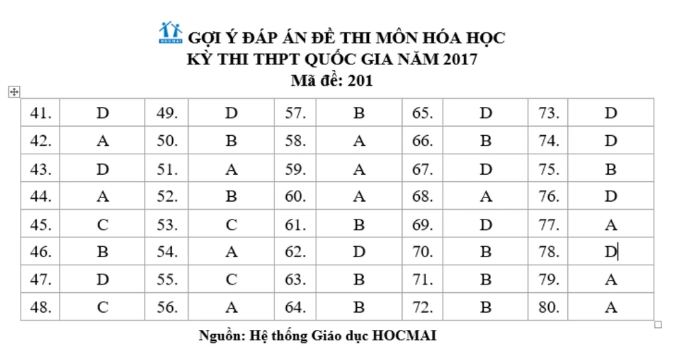 Đề thi, gợi ý bài giải các mã đề môn Hóa học