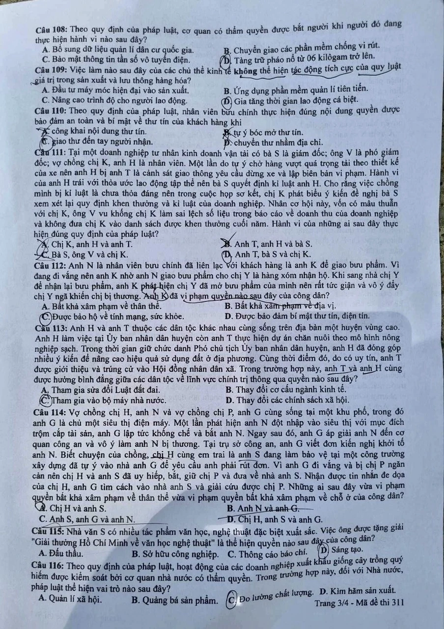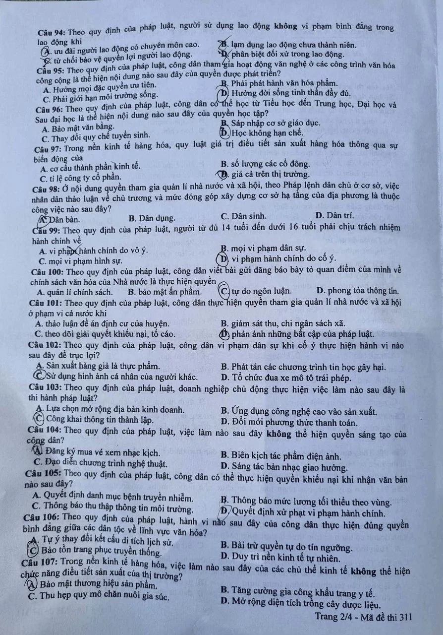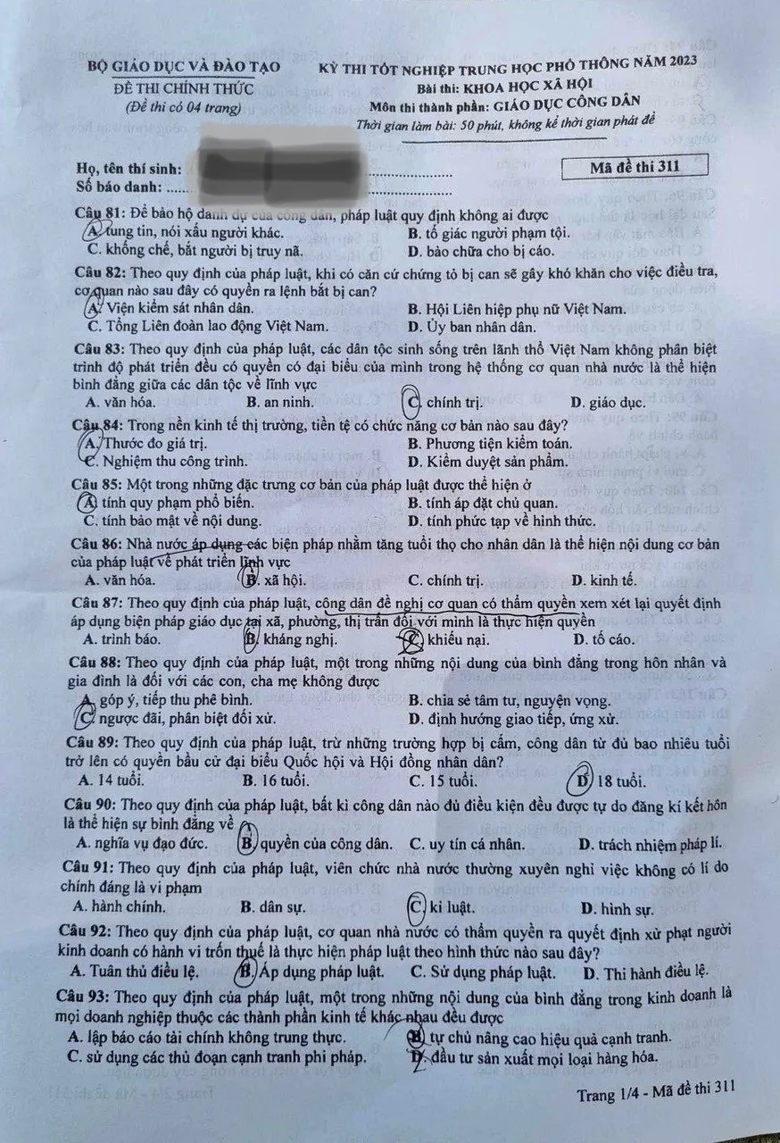 Đề thi môn Giáo dục công dân kỳ thi THPT 2023