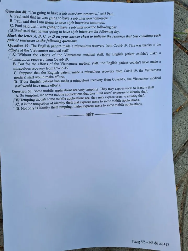 Mã đề 413: