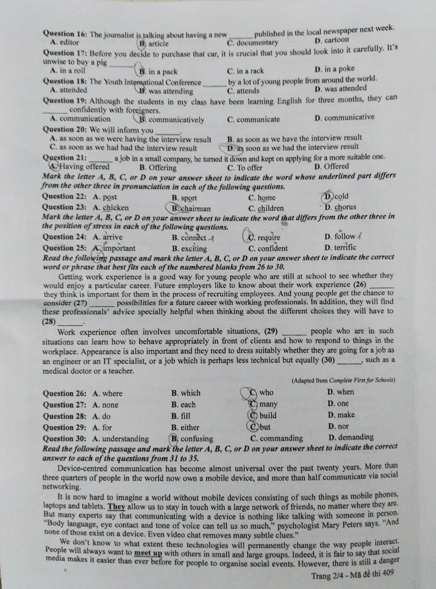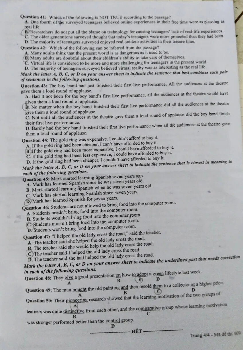 Mã đề 409: