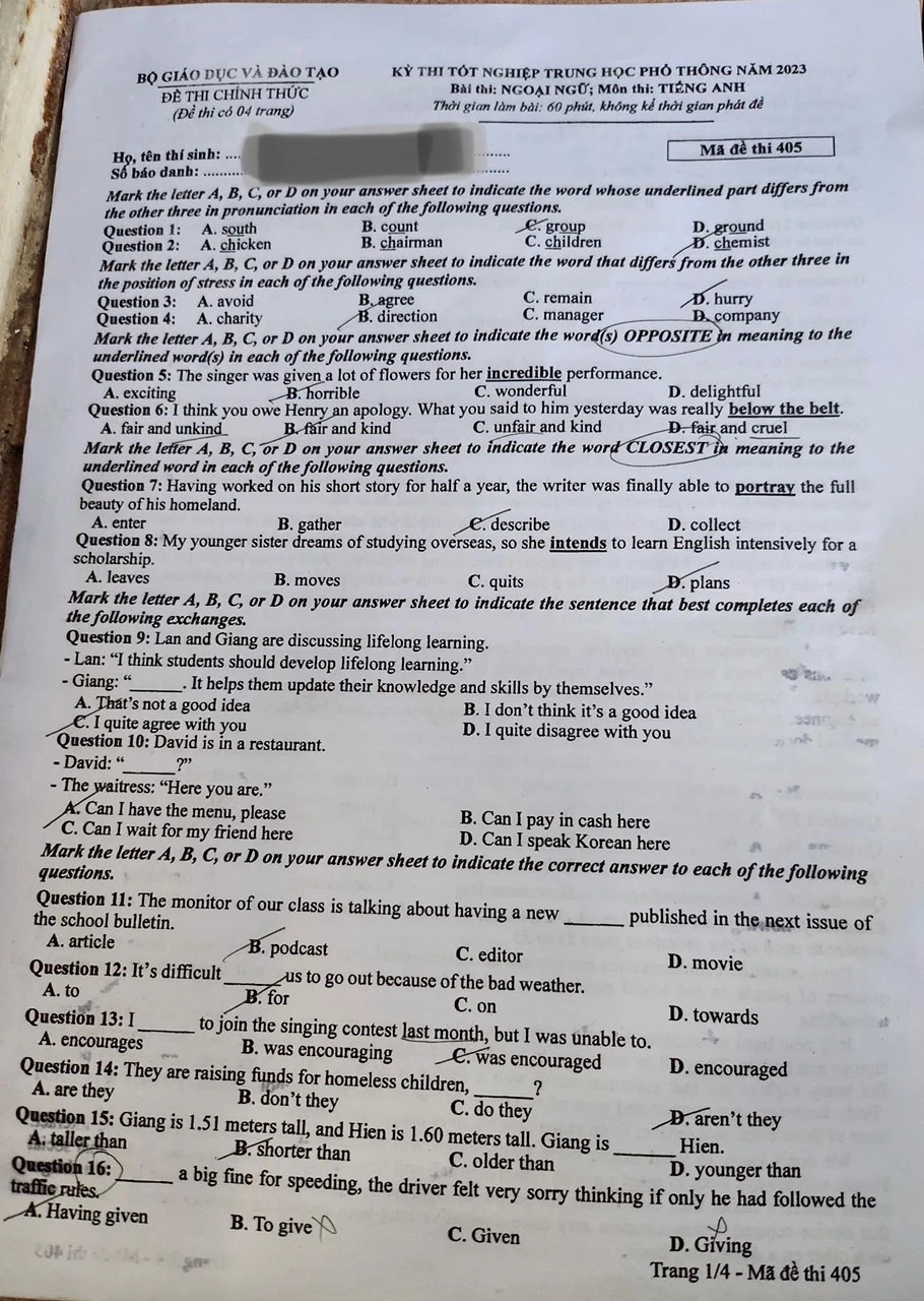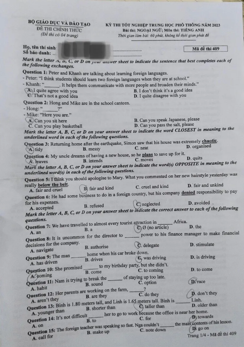 Đề thi môn tiếng Anh kỳ thi tốt nghiệp THPT 2023