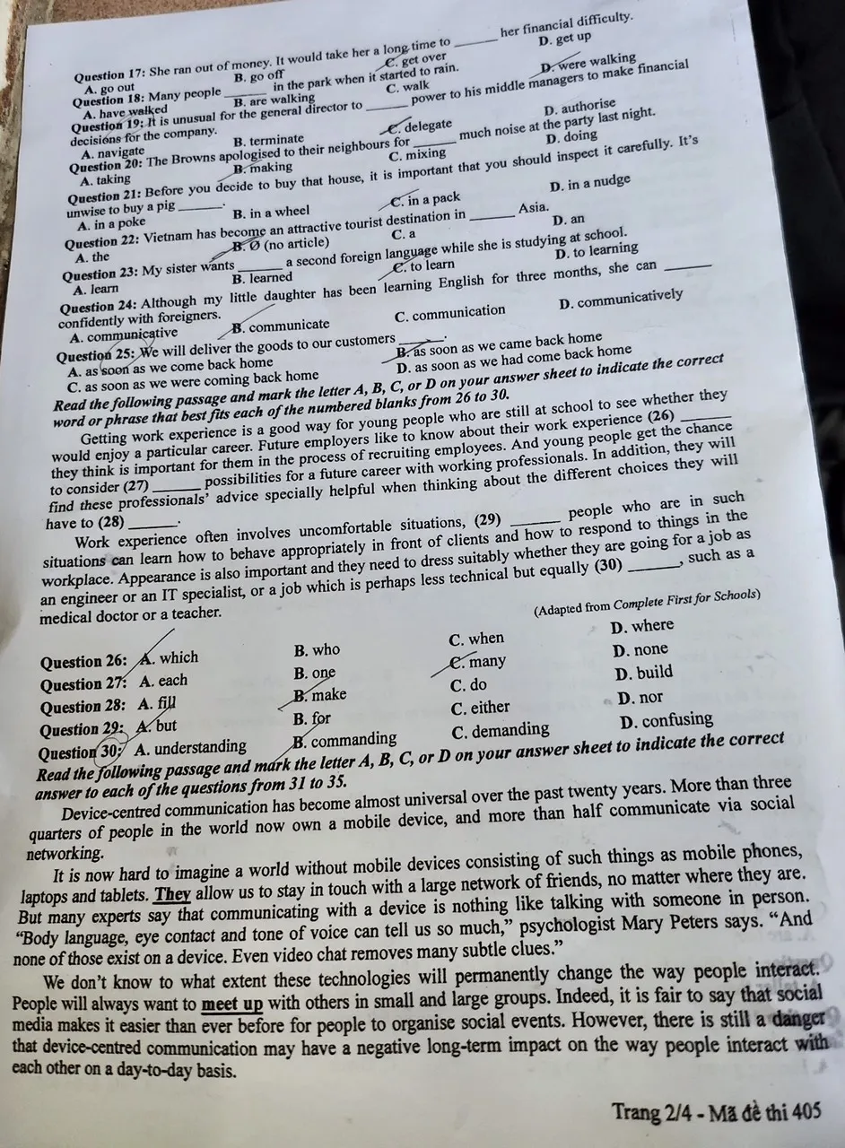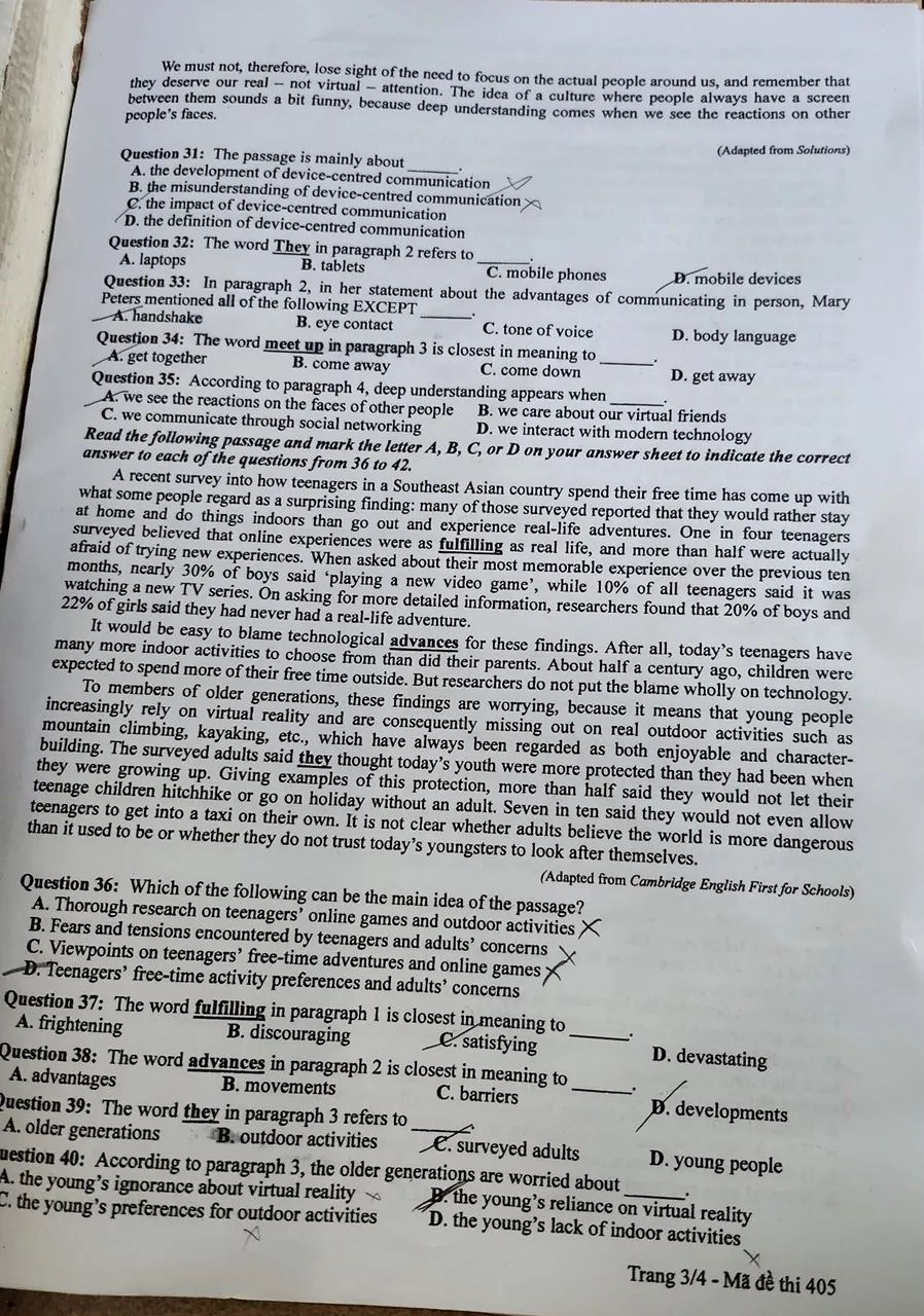 Mã đề 405:
