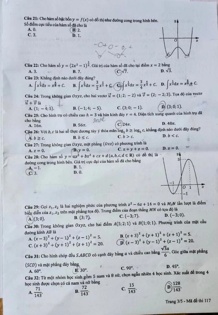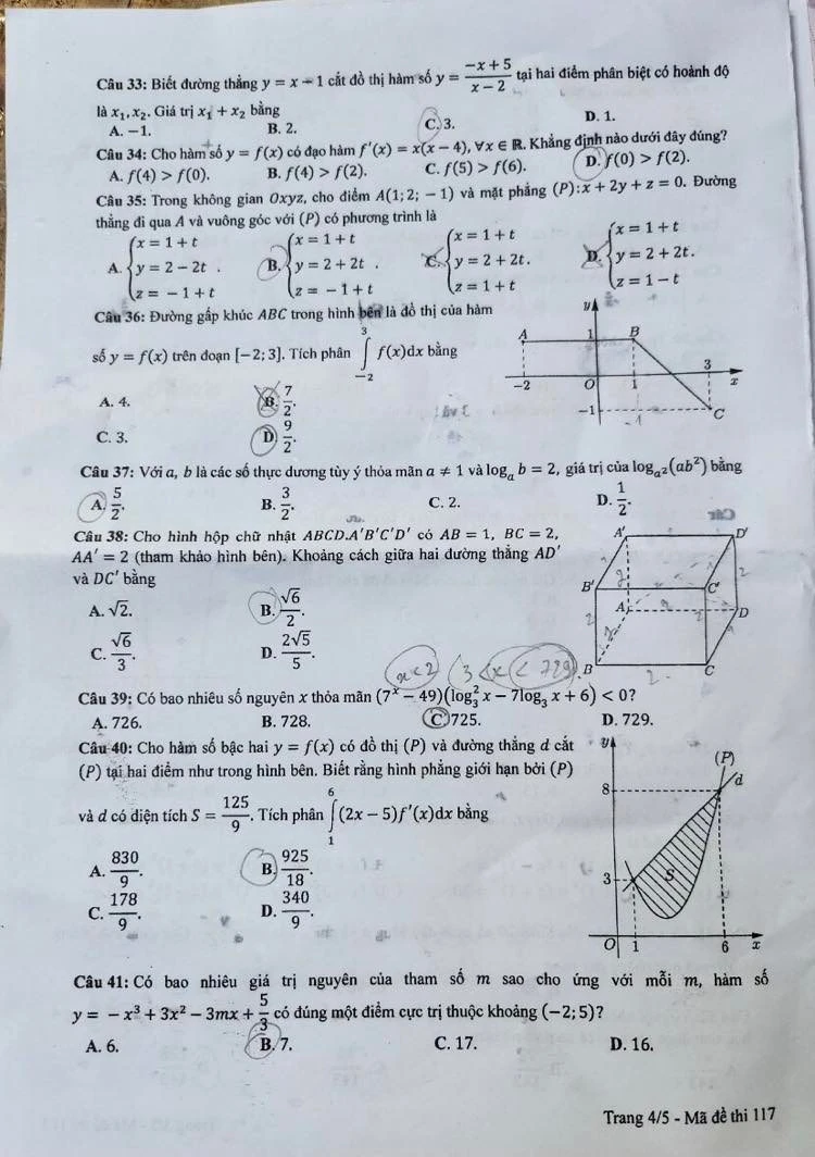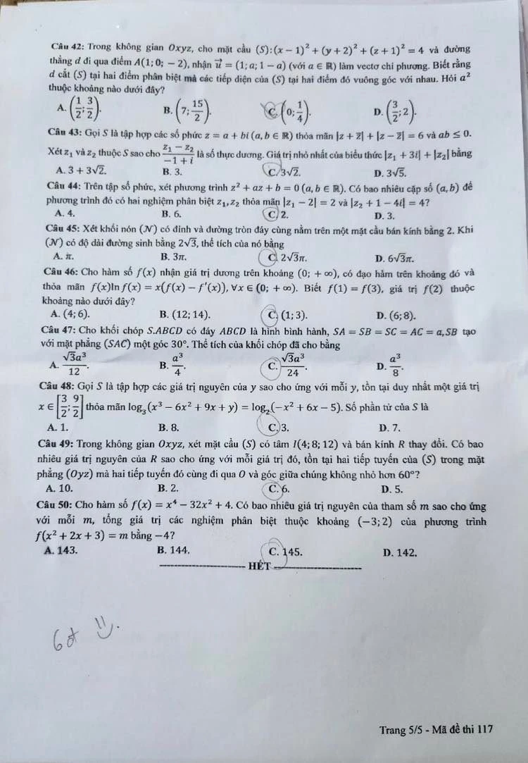 Đề thi môn Toán tốt nghiệp THPT 2023 ảnh 1