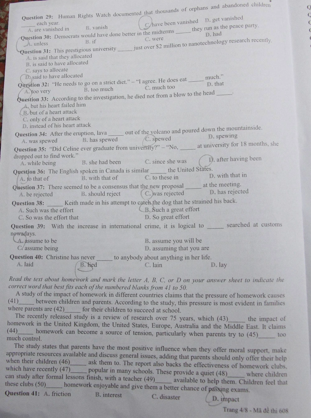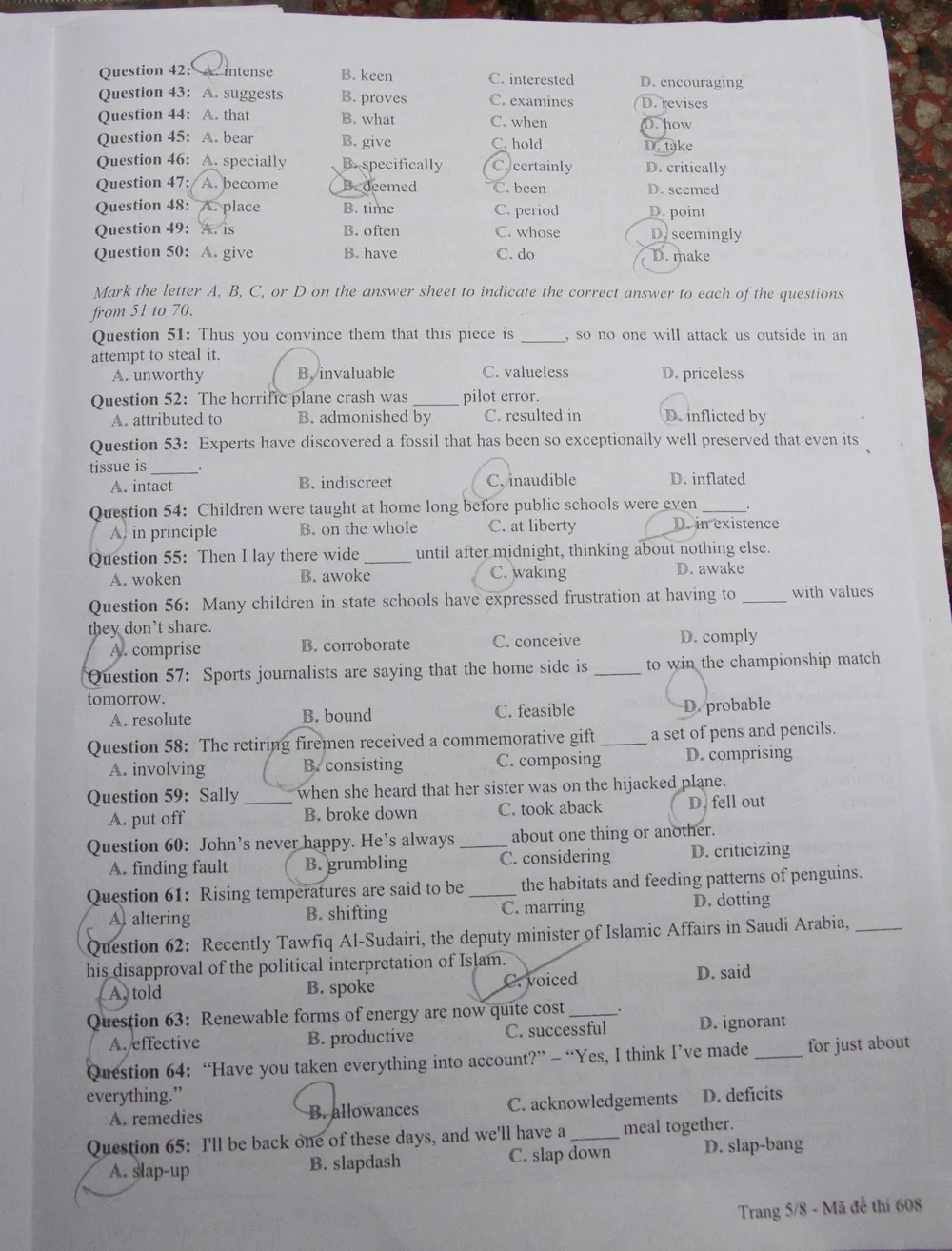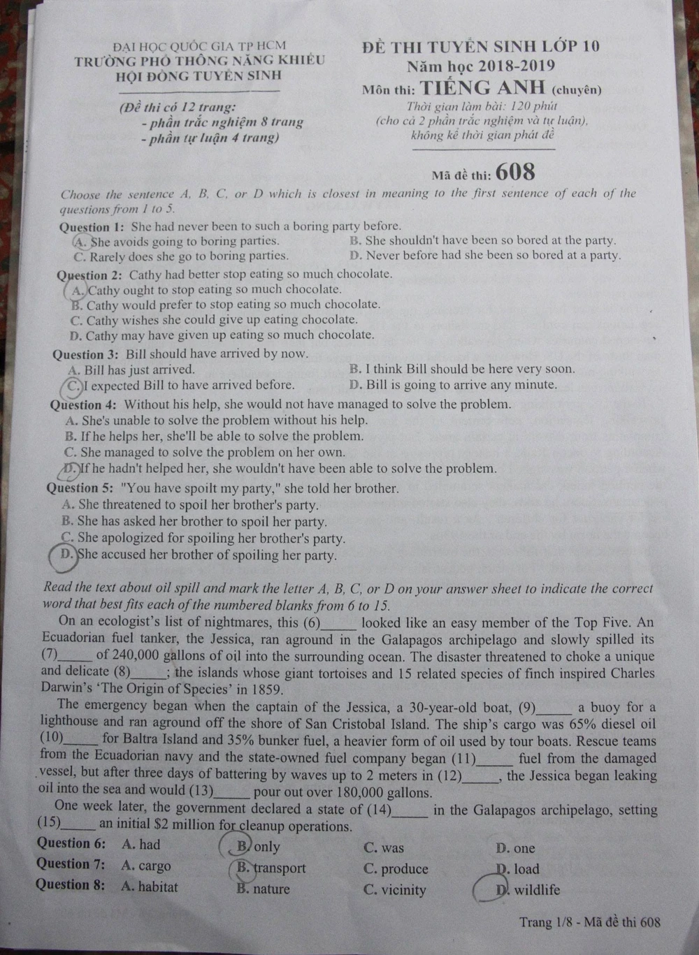 Tương tự, thí sinh Phạm Trang (quận 3, TP.HCM) cho hay đề vừa dài lại khó, có những dạng cấu trúc câu và từ vựng là mà em chưa từng được tiếp cận. Vì thế, dù đã cố gắng nhưng em may lắm cũng chỉ đạt điểm trung bình.
