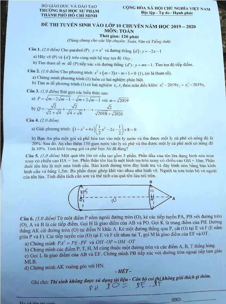 Đề thi Toán vào Trung học thực hành, Đại học Sư phạm TP.HCM.
