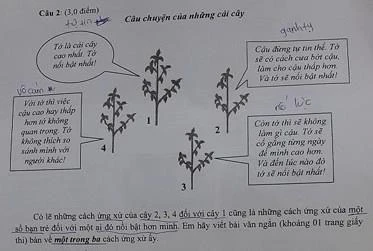 Phần lớn các thí sinh tại TP.HCM đều cho rằng đề văn khá vừa sức, không có kiến thức ngoài sách giáo khoa. Đặc biệt ở câu 2, bàn về câu chuyện của bốn cái cây với ba cách ứng xử của một số bạn trẻ với một ai đó nổi bật hơn mình khiến các học sinh (HS) bàn luận say sưa khi những cách ứng xử này luôn biểu hiện mọi lúc, mọi nơi trong cuộc sống của các em.