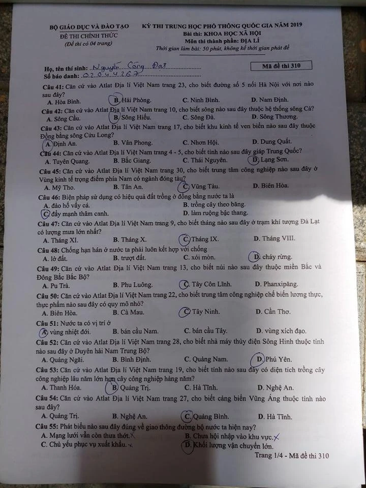 Bài giải gợi ý đề thi môn Địa lý, mã đề 301, mời xem TẠI ĐÂY