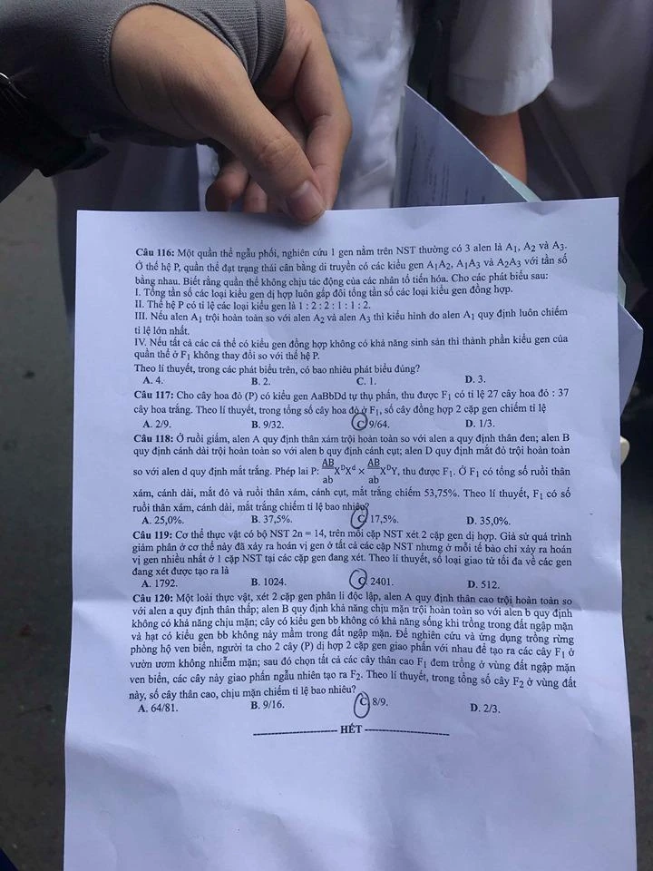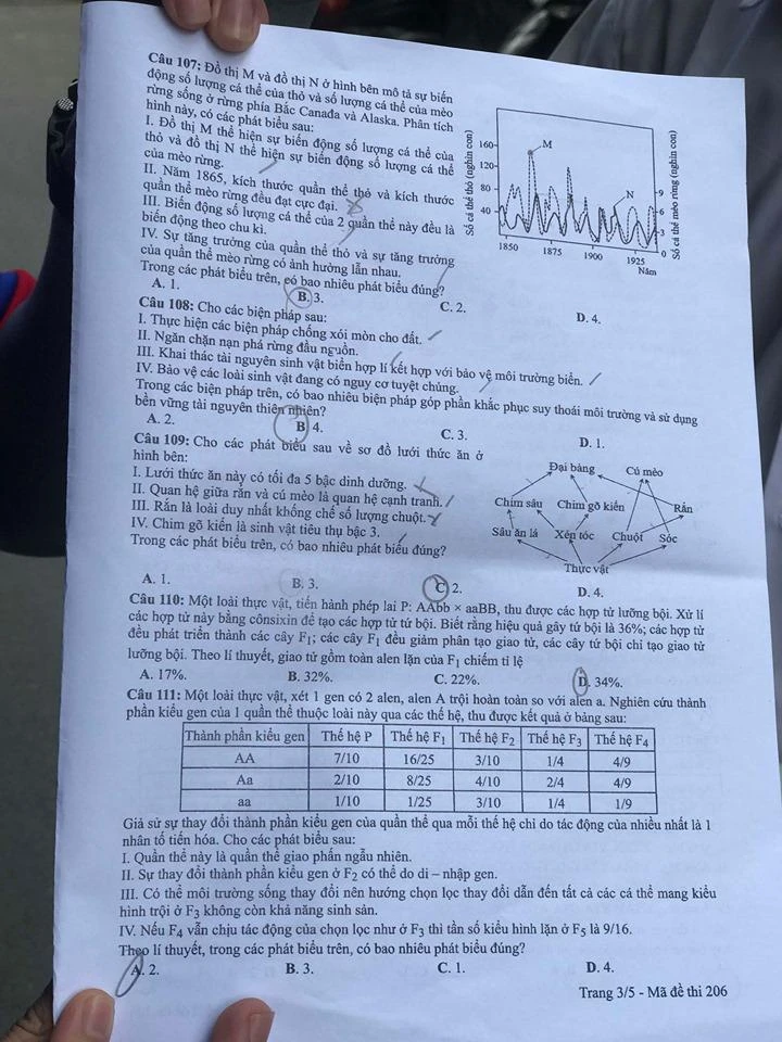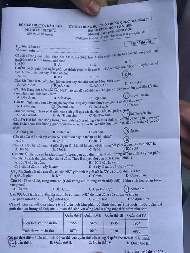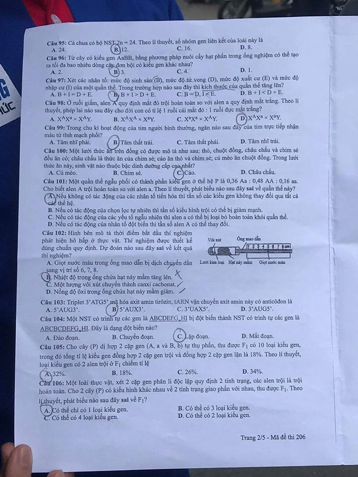 Mời bạn đọc xem đề thi môn Sinh, mã đề 206: