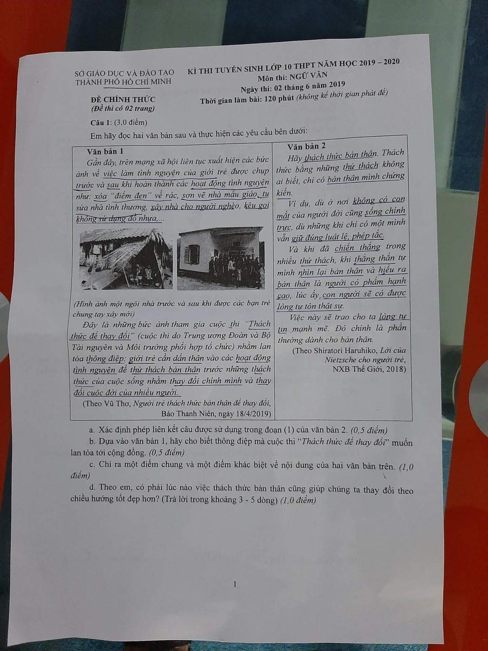 Mời bạn đọc tham khảo đề thi môn Văn tại TP.HCM: