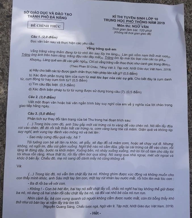 Đề thi môn Ngữ văn tại Đà Nẵng: