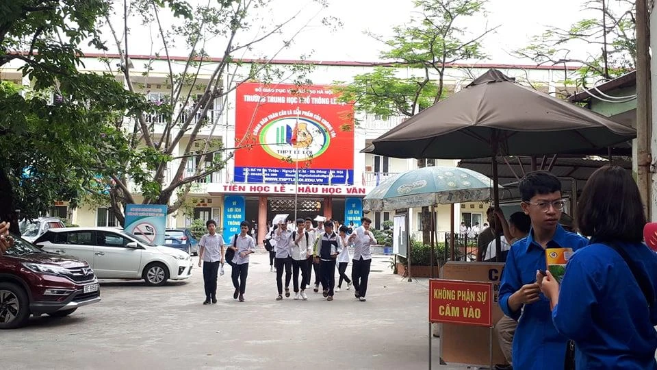 Những thí sinh đầu tiên tại điểm trương THPT Lê Lợi, Hà Đông, Hà Nội rời phòng thi lúc 10 giờ. Ảnh: HÀ PHƯỢNG