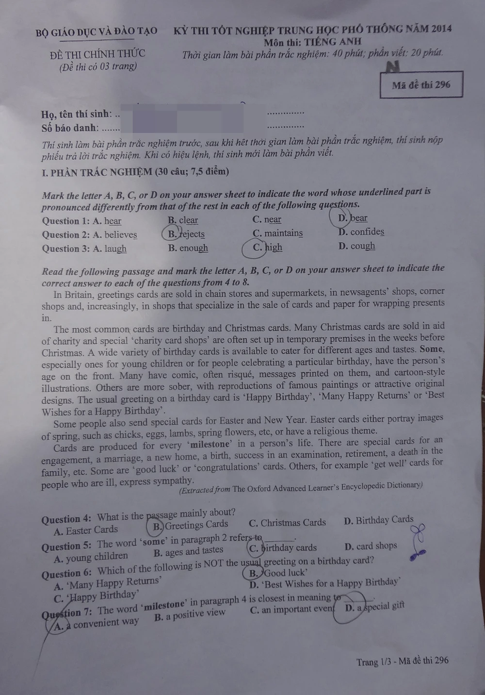 Đề thi Ngoại ngữ môn Tiếng Anh: