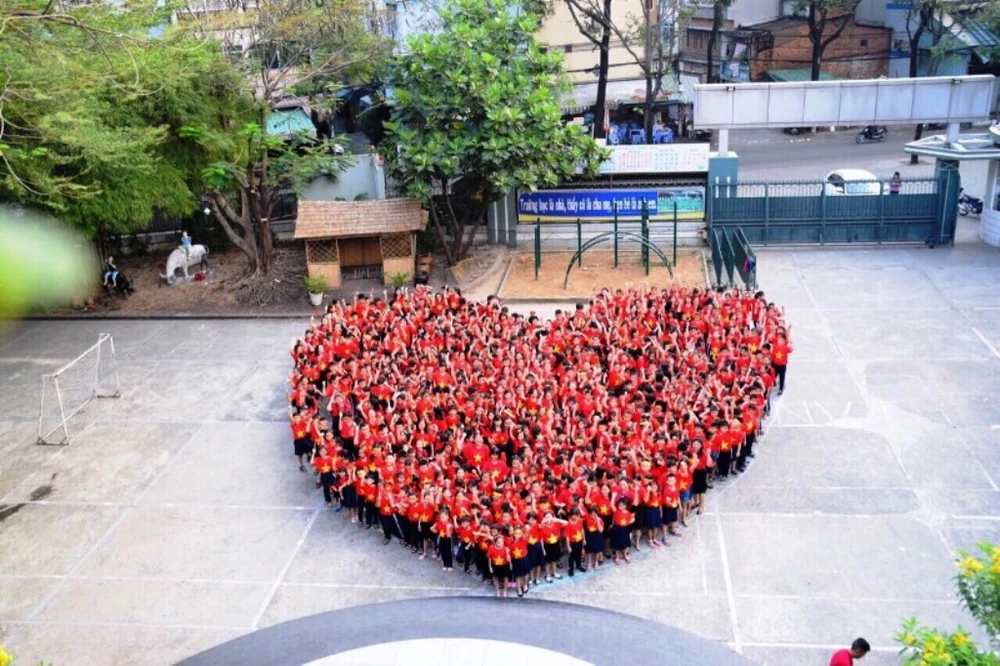 Cô trò Trường Tiểu học Nguyễn Văn Trỗi xếp hình trái tim gửi lời chúc đến đội tuyển U-23 Việt Nam