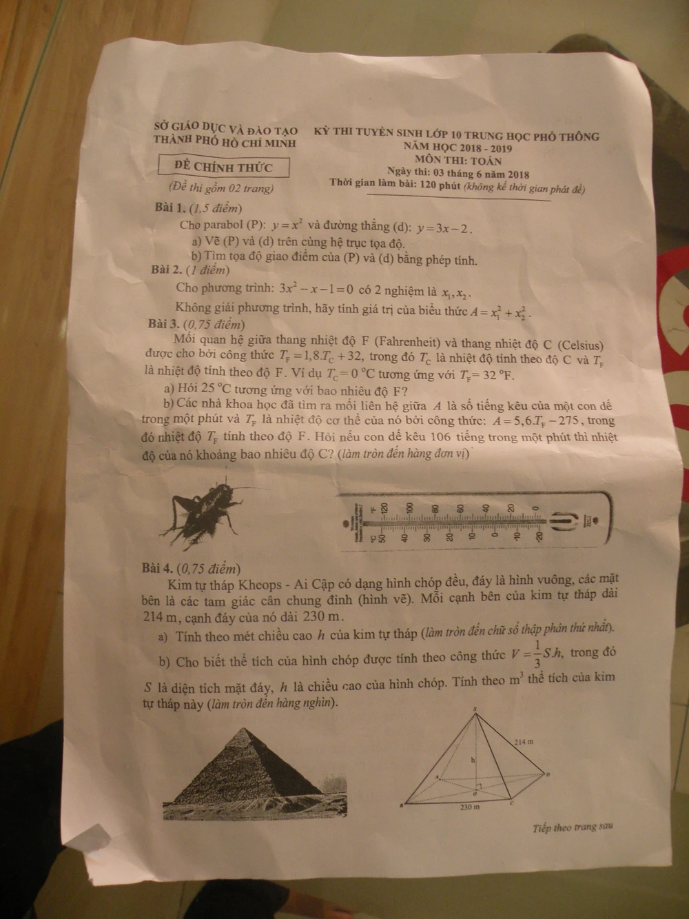 Đề thi môn toán sáng nay.
