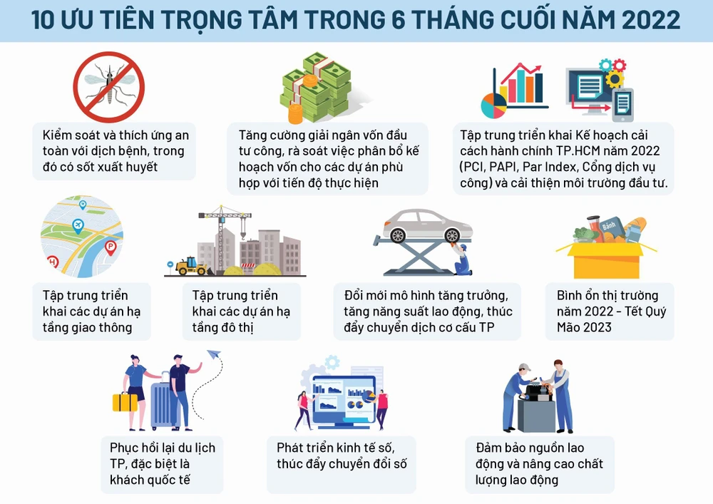 Nhìn lại sáu tháng đầu năm, theo TS Trương Minh Huy Vũ (ĐH Quốc gia TP.HCM), nếu TP.HCM giải quyết gấp rút các điểm nghẽn hiện nay và được hưởng một cơ chế đặc thù mới ưu việt hơn từ nền tảng Nghị quyết 54 thì TP có thể phát triển mạnh mẽ hơn nữa, trở thành “nơi trú bão” an toàn trong bối cảnh khu vực và thế giới có nhiều biến động.