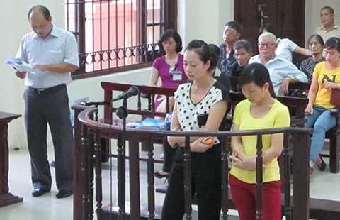 Từ phải qua, bị cáo Hồng, Quyên tại phiên tòa. Ảnh: TUYẾN PHAN