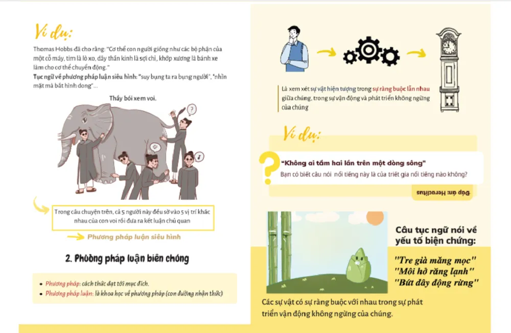 Dùng thành ngữ , tục ngữ làm ví dụ về phương pháp luận giúp các khái niệm thêm sinh động, gần gũi. Ảnh chụp màn hình