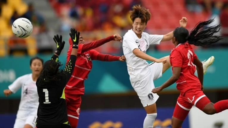 Hàn Quốc (trắng) đá với Maldives như một cữ dượt cũng tạo "mưa gôn" tám bàn.
