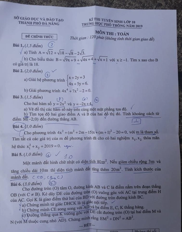 Đề thi môn toán tuyển sinh lớp 10 tại Đà Nẵng. Ảnh: TÂM AN