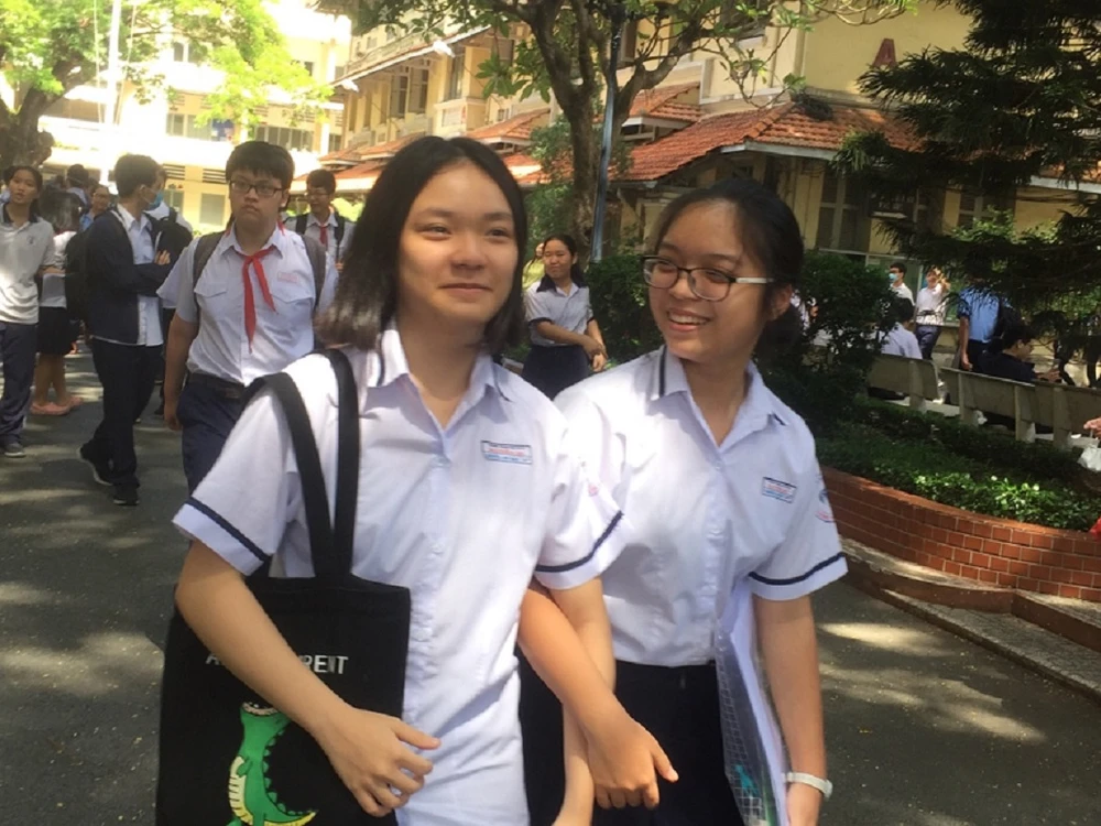 Thí sinh tươi cười rời phòng thi. Ảnh: ÁNH NGUYỆT