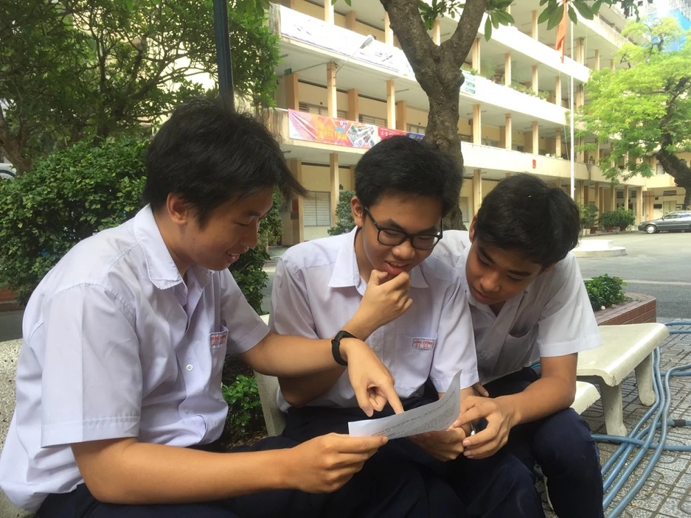 Thí sinh trao đổi sau giờ thi. Ảnh: ÁNH NGUYỆT
