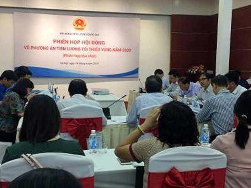 Phiên họp kín đầu tiên của Hội đồng Tiền lương Quốc gia. Ảnh CTV