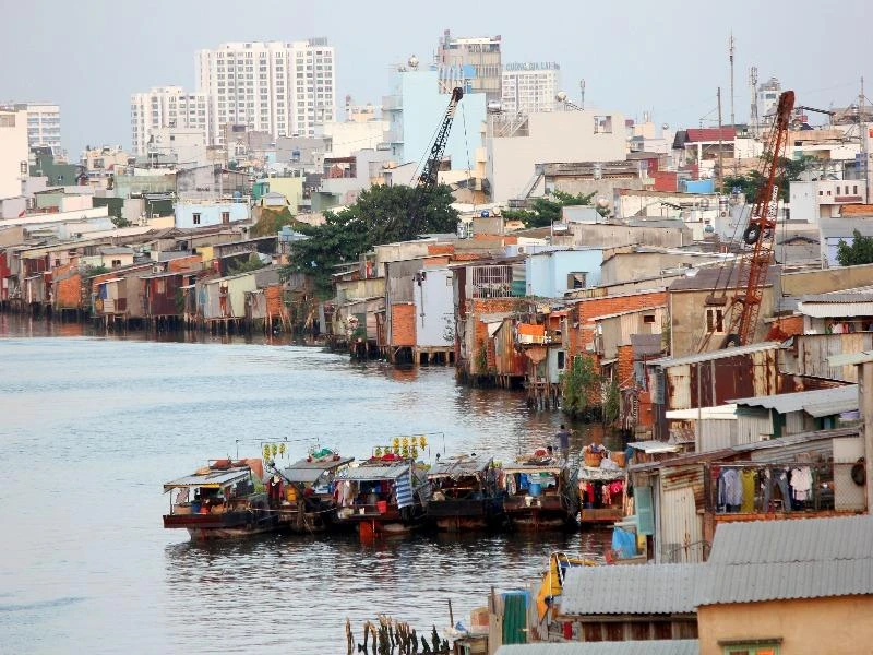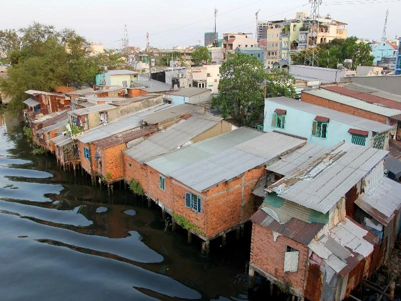 Nhà ở lụp xụp trên kênh rạch quận 8. Ảnh: HOÀNG GIANG
