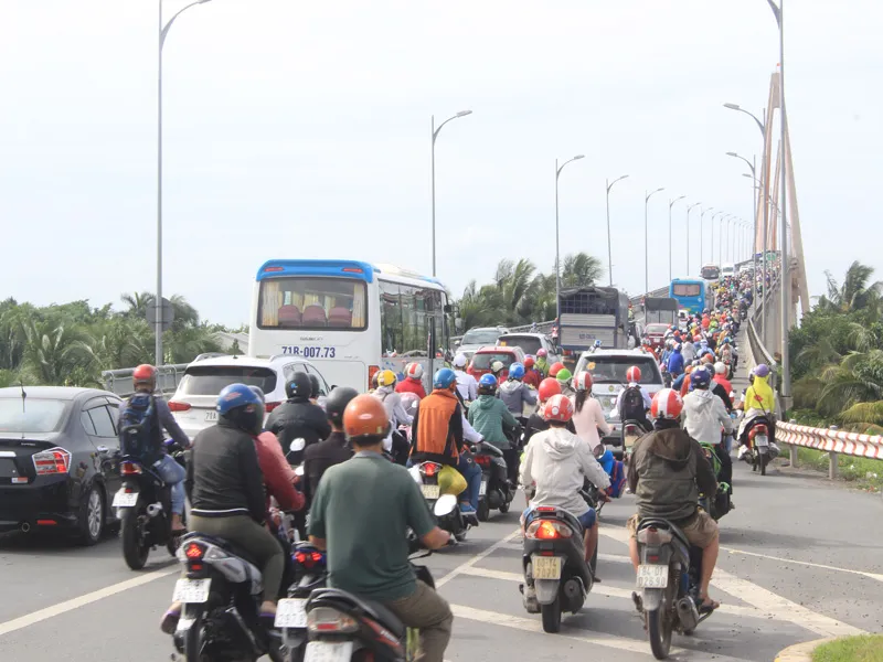 Kẹt cứng đường qua cầu Rạch Miễu mỗi dịp lễ, tết.