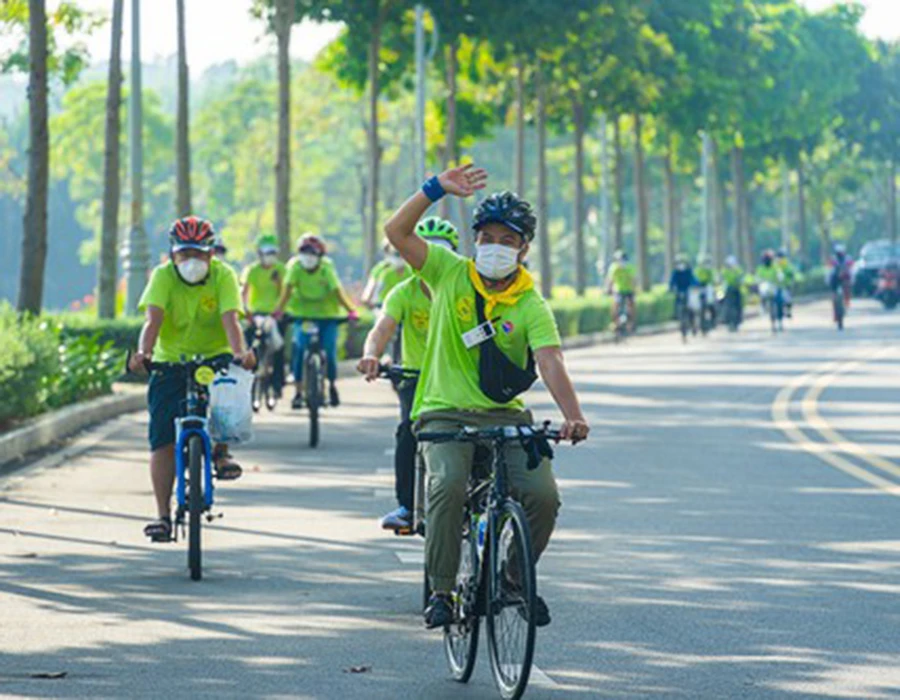 Du khách tham gia tour Biking tour Sài Gòn - hình thức du lịch bằng xe đạp được công ty du lịch tung ra theo xu hướng xanh. Ảnh: V.THẢO