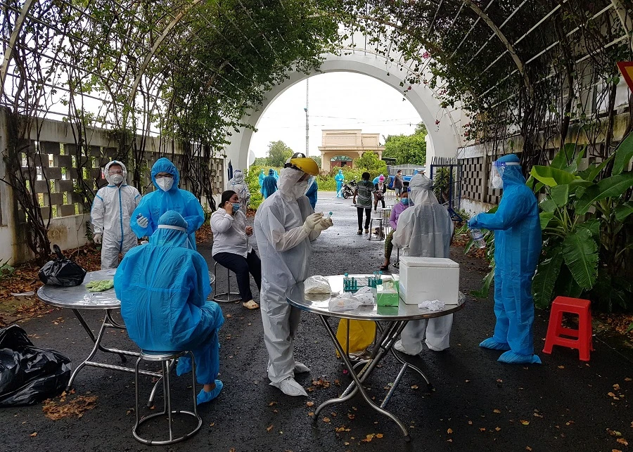 Sai phạm của lãnh đạo trạm Y tế được xác định đã gây khó khăn cho công tác phòng chống dịch tại xã Phước Thuận-(Ảnh lấy mẫu xét nghiệm người dân ấp Hồ Tràm, xã Phước Thuận mới đây)