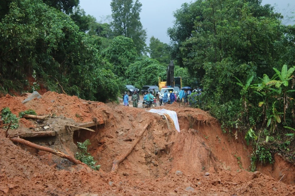 Đường vào xã Hướng Việt đang bị chia cắt. Ảnh: CTV