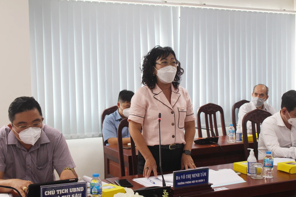 ĐB Văn Thị Bạch Tuyết phát biểu ghi nhận các kiến nghị của quận về xây dựng trụ sở UBND phường Võ Thị Sáu. Ảnh: NGUYỄN YÊN