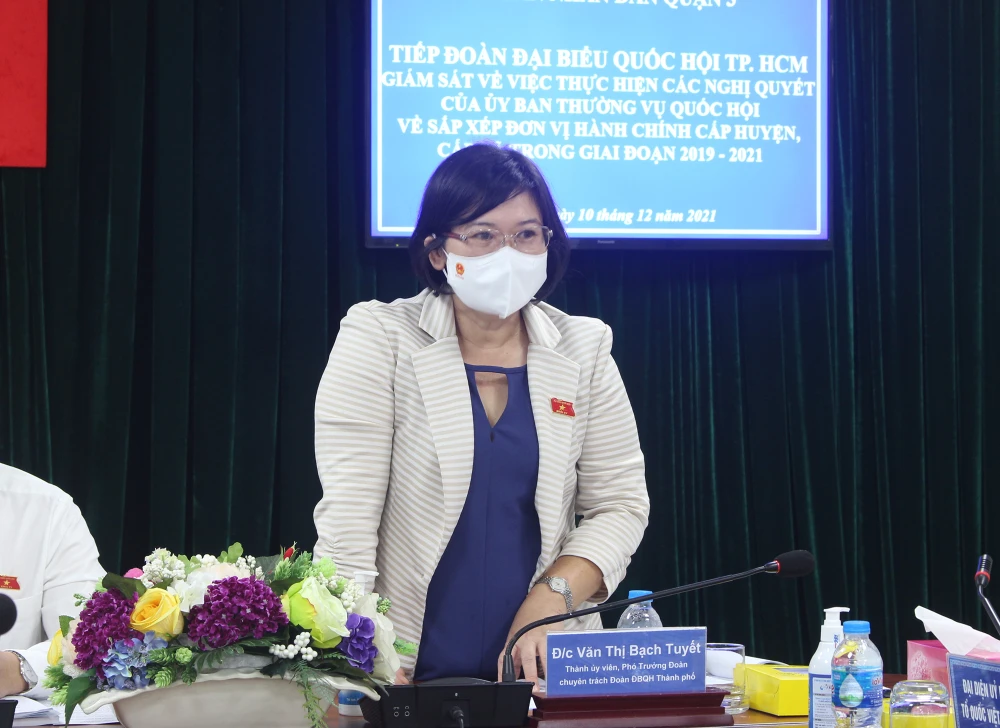 Chiều 10-12, đoàn đại biểu Quốc hội (ĐBQH) TP.HCM do Phó Trưởng đoàn Văn Thị Bạch Tuyết dẫn đầu, đã có buổi làm việc với UBND quận 3 về việc thực hiện các nghị quyết của Uỷ ban Thường vụ Quốc hội về sắp xếp đơn vị hành chính cấp huyện, cấp xã trong giai đoạn 2019-2021.