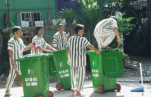 Các phạm nhân đang làm vệ sinh tại trại tạm giam Chí Hòa, TP.HCM. Ảnh: HTD