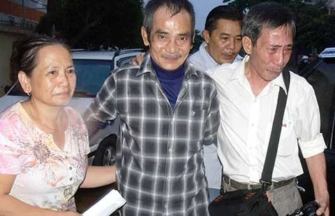 Ông Huỳnh Văn Nén (giữa) từng xin tạm ứng 1 tỉ đồng tiền bồi thường oan nhưng không được giải quyết do chưa có quy định. Ảnh: P.NAM