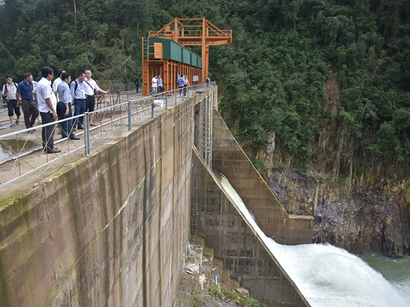 Đoàn công tác kiểm tra thủy điện Thượng Nhật. Ảnh: NGUYỄN DO