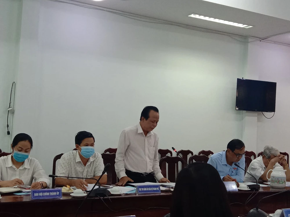 Đại diện Cục Thi hành án dân sự TP.HCM phát biểu. Ảnh: A.TUẤN