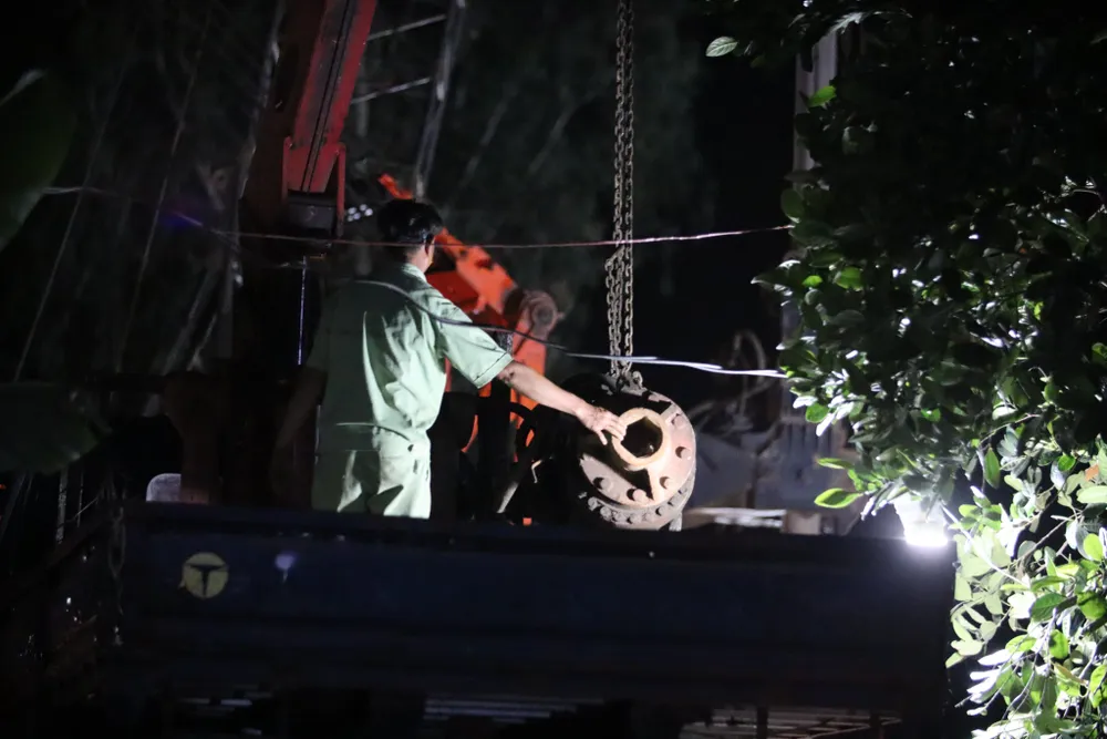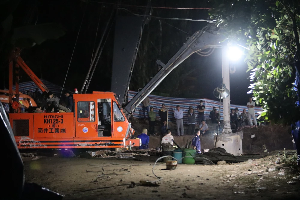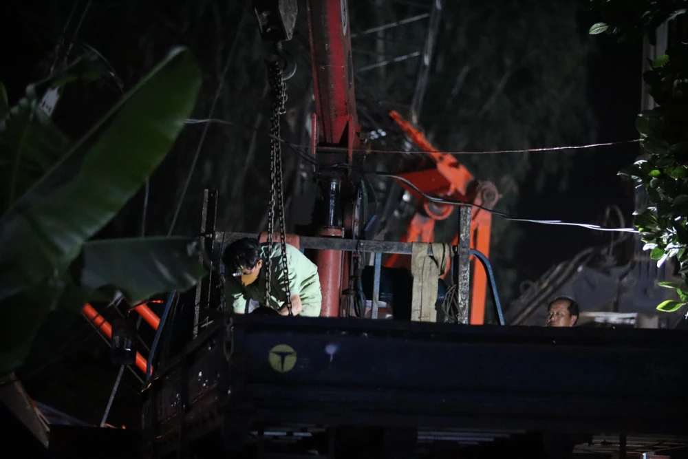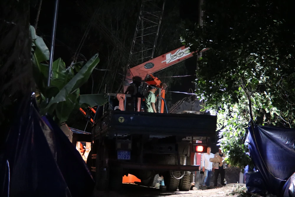 Ba xe cẩu vận hành liên tục tại hiện trường. Đến 2 giờ 30 phút rạng sáng ngày 2-1-2023, thêm một xe cẩu chở các trục khoan đưa đến khu vực để cứu cháu bé.
