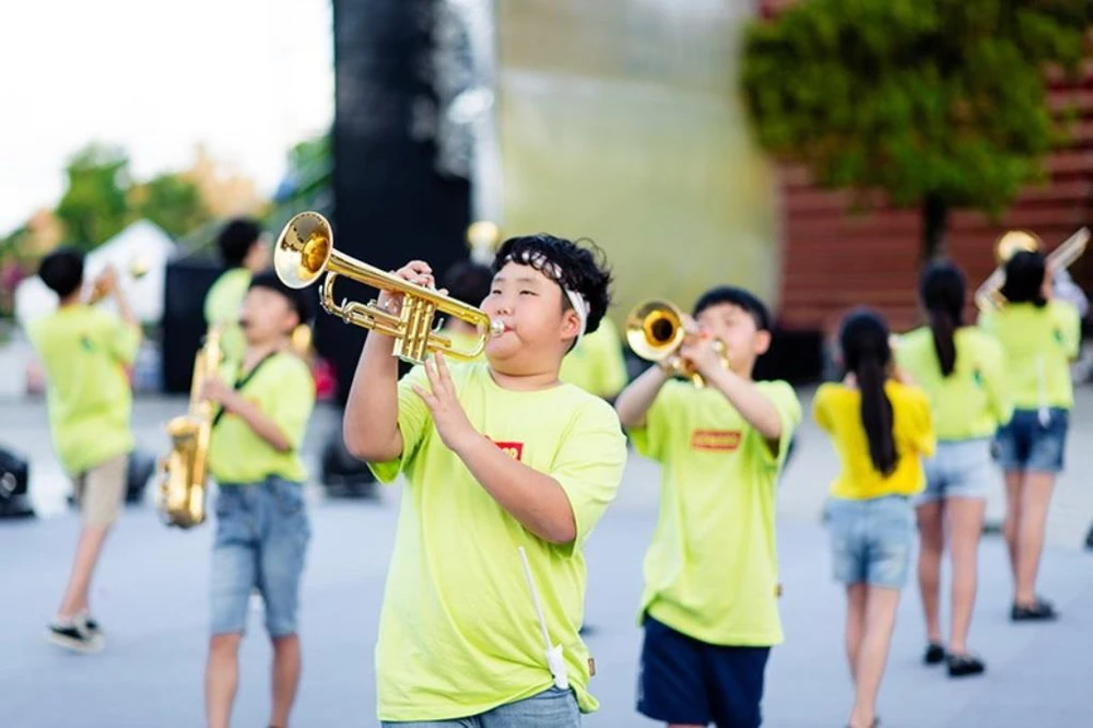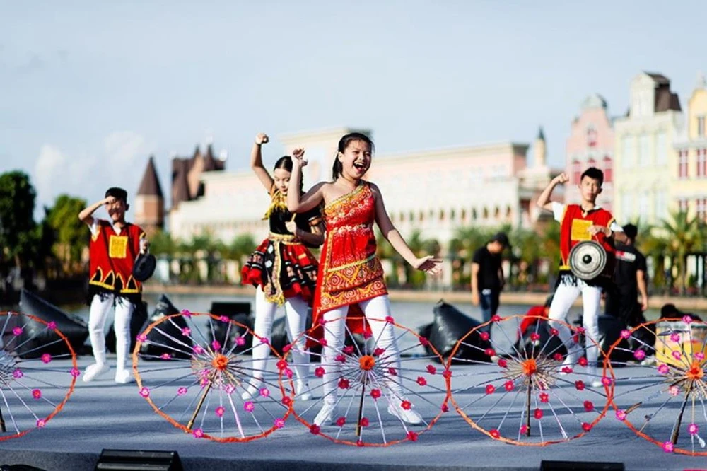 Tiết mục đặc biệt này của đoàn thiếu nhi Việt Nam được trình diễn bởi các học sinh của trường Phổ thông liên cấp Vinschool.