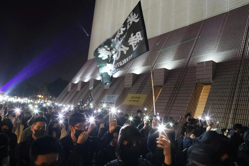 Người biểu tình trong cuộc biểu tình vào đêm Giáng sinh ngày 24-12-2019. Ảnh: REUTERS