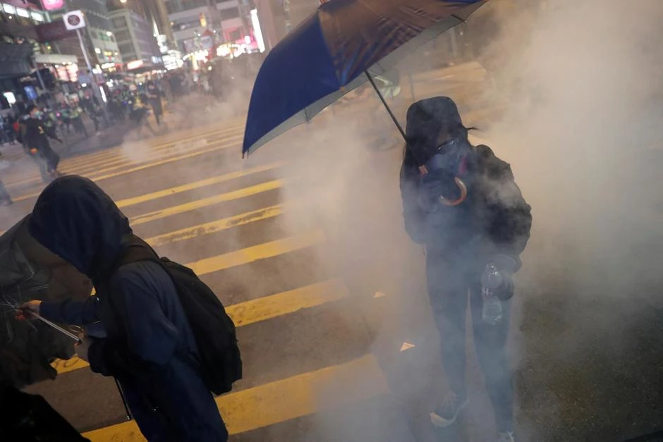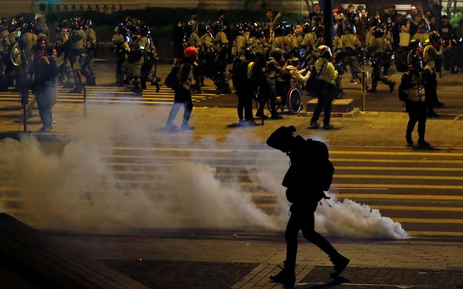 Cảnh sát Hong Kong sử dụng hơi cay để giải tán hàng ngàn người biểu tình đeo mặt nạ và cả sừng tuần lộc đồng loạt ùa vào các trung tâm mua sắm và khu du lịch, trong những vụ ẩu đả giữa cả hai vào đêm Giáng Sinh.